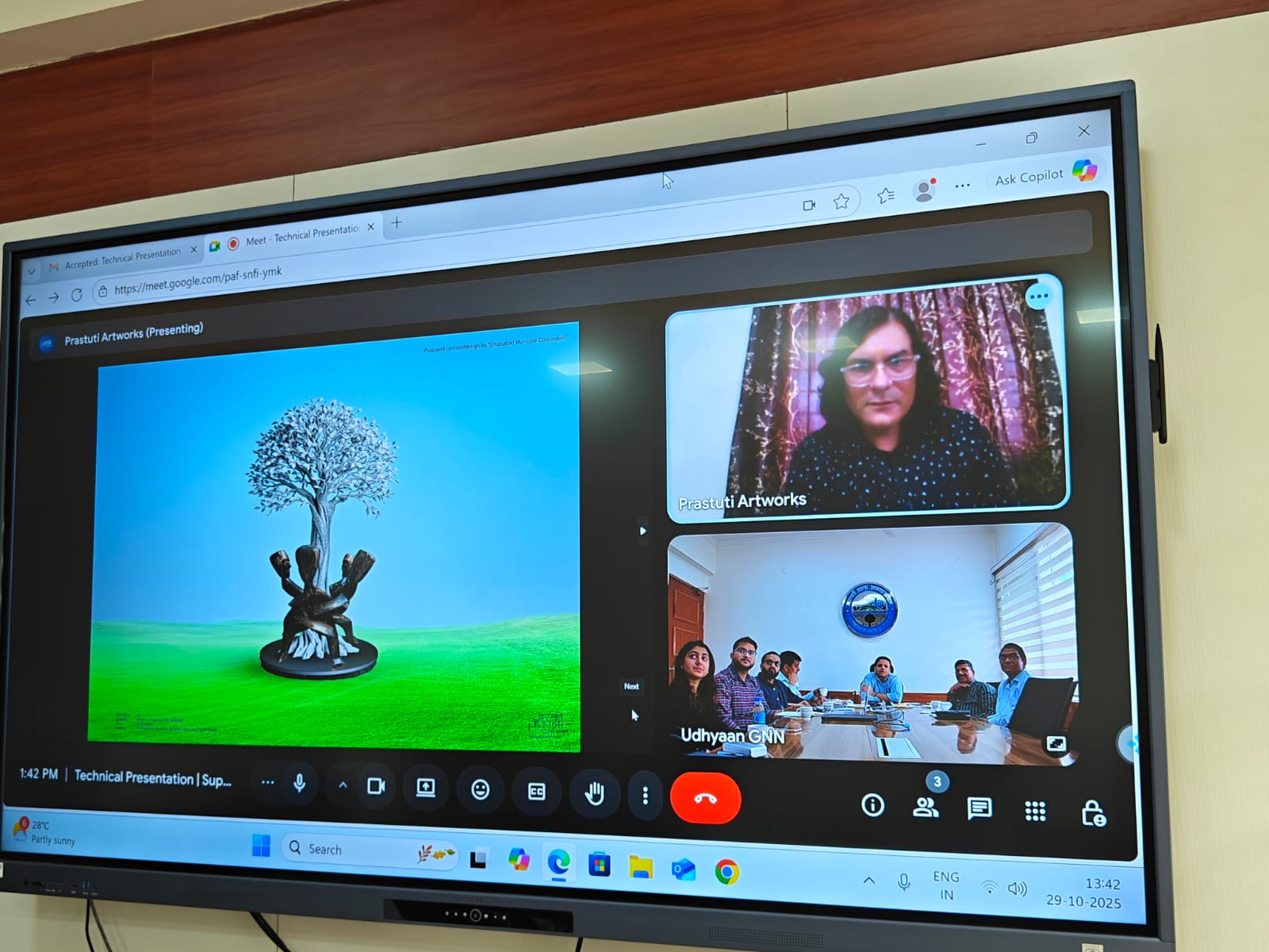 nagar nigam  गाजियाबाद( 30 अक्तूबर 2025) नगर आयुक्त की कमान में नगर निगम जहां शहर के विकास कार्यों पर निरंतर आगे बढ़ रहा है साथ ही शहर की सुंदरता को बढ़ाने के लिए भी कार्य कर रहा है, इसी कड़ी में नगर आयुक्त विक्रमादित्य सिंह मलिक के निर्देश अनुसार गाजियाबाद शहर के पांच प्रमुख चौराहों को भव्यता से सुंदर बनाने का कार्य उद्यान विभाग द्वारा किया जा रहा है जिसके लिए प्री बीड मीटिंग और प्रेजेंटेशन की कार्यवाही की गई जिसमें नगर आयुक्त की अध्यक्षता में केरल मथुरा तथा इंदौर की फर्म ने अपना प्रज़ेटेशन दिया । केरल से अनार फर्म तथा इंदौर से प्रस्तुति फर्म ने अपना ऑनलाइन प्रस्तुतीकरण किया गया, जिसमें निविदा के क्रम में अपनी कला के बारे में प्रज़ेटेशन किया गया गाजियाबाद शहर के लिए अद्भुत कलाकृति पेश की गई ।